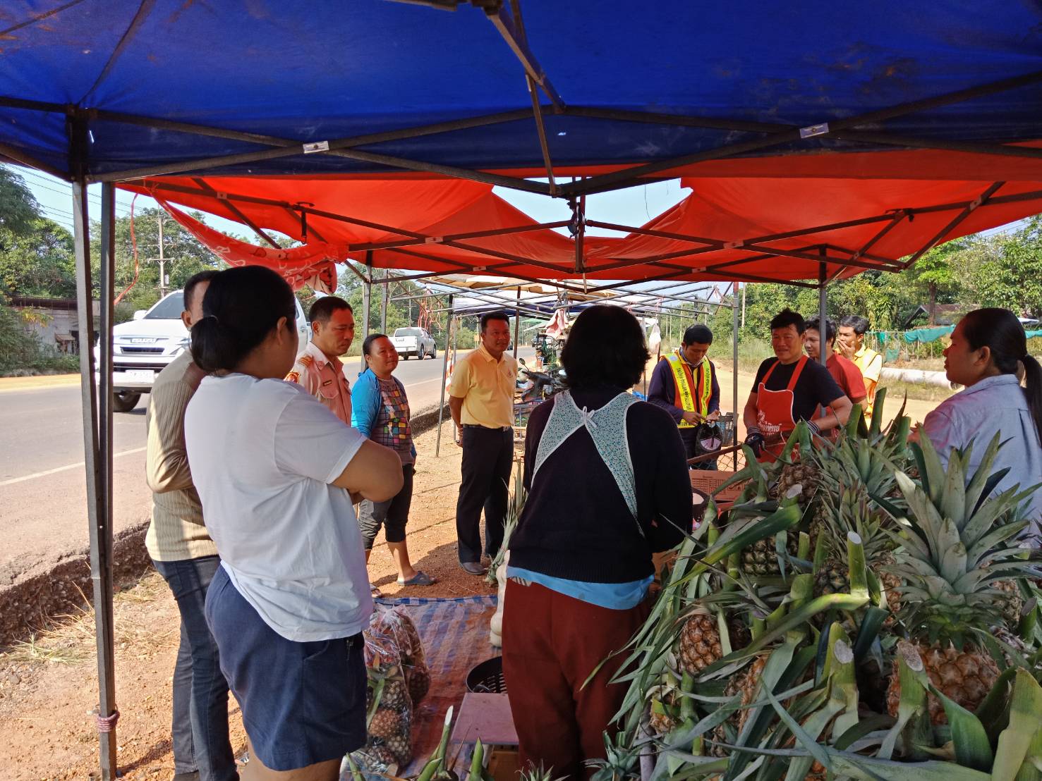 หมวดทางหลวงท่าอุเทนร่วมกับโครงการก่อสร้าง และตัวแทนบริษัท เข้าผลักดันร้านค้ารุกล้ำเขตทางในช่วงงานก่อสร้าง