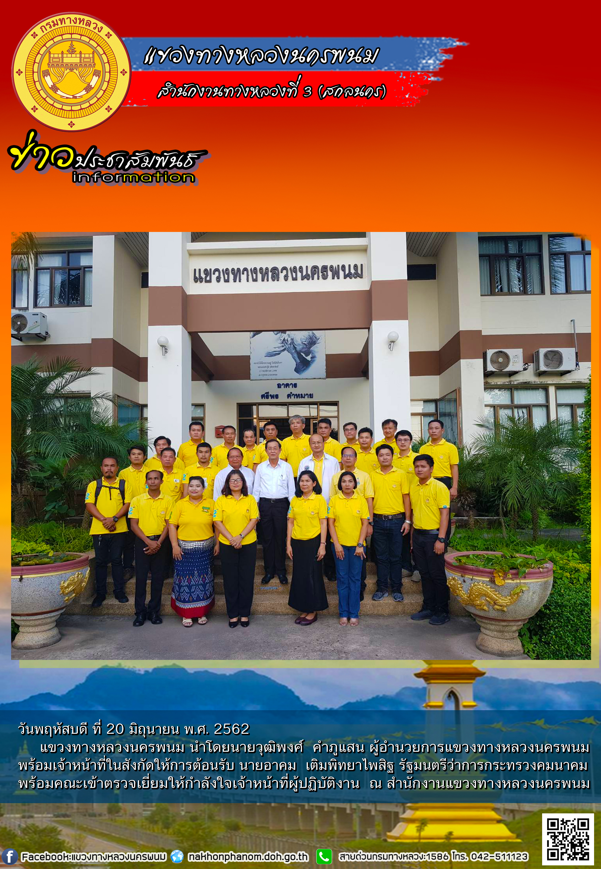 นายอาคม เติมพิทยาไพสิฐ รัฐมนตรีว่าการกระทรวงคมนาคม เข้าตรวจเยี่ยมและให้กำลังใจเจ้าหน้าที่ผู้ปฏิบัติงาน