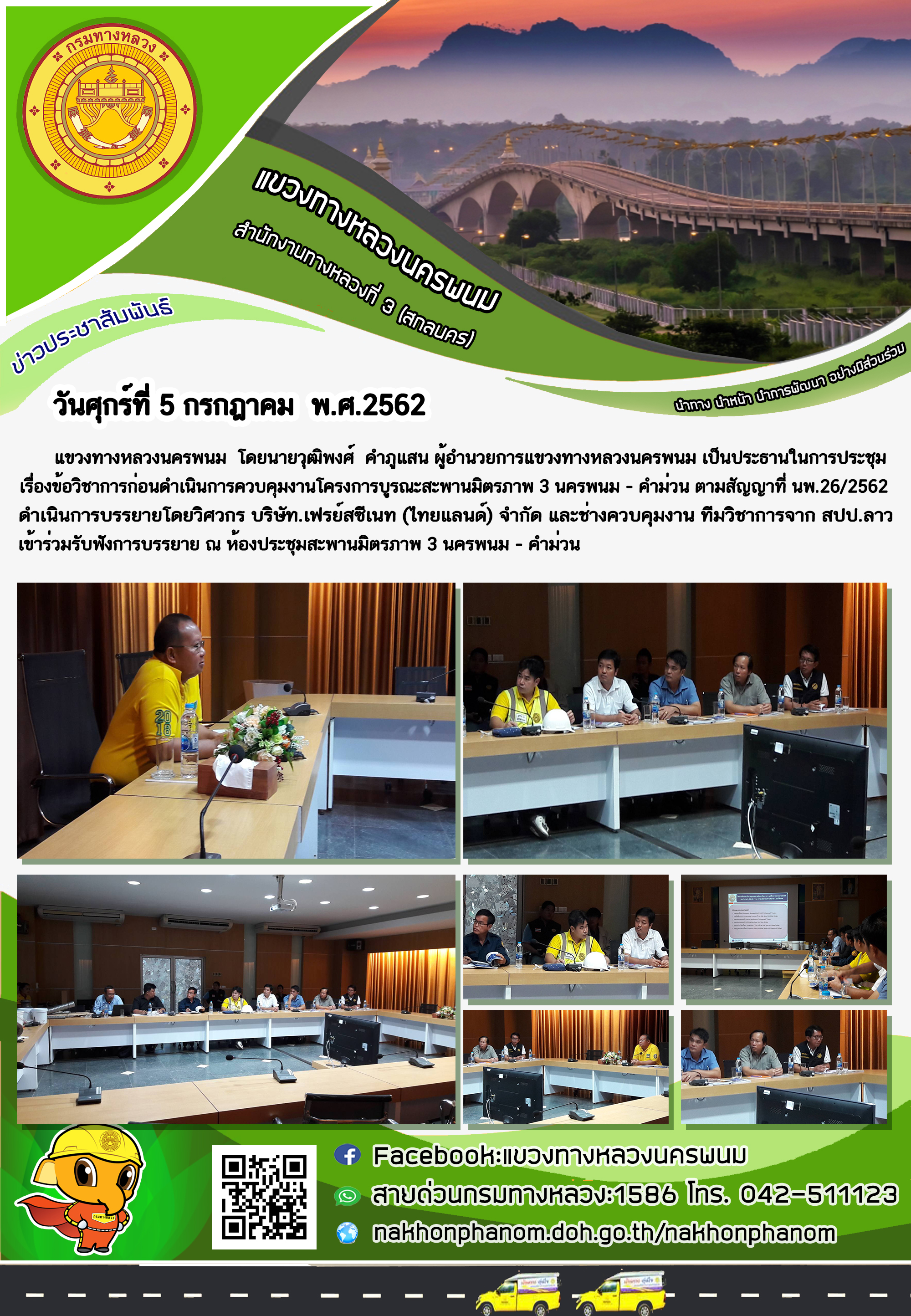 ประชุม เรื่องข้อวิชาการก่อนดำเนินการควบคุมงานโครงการบูรณะสะพานมิตรภาพ 3 นครพนม - คำม่วน