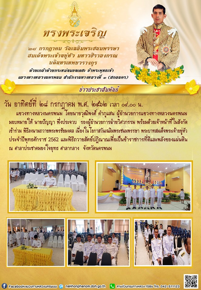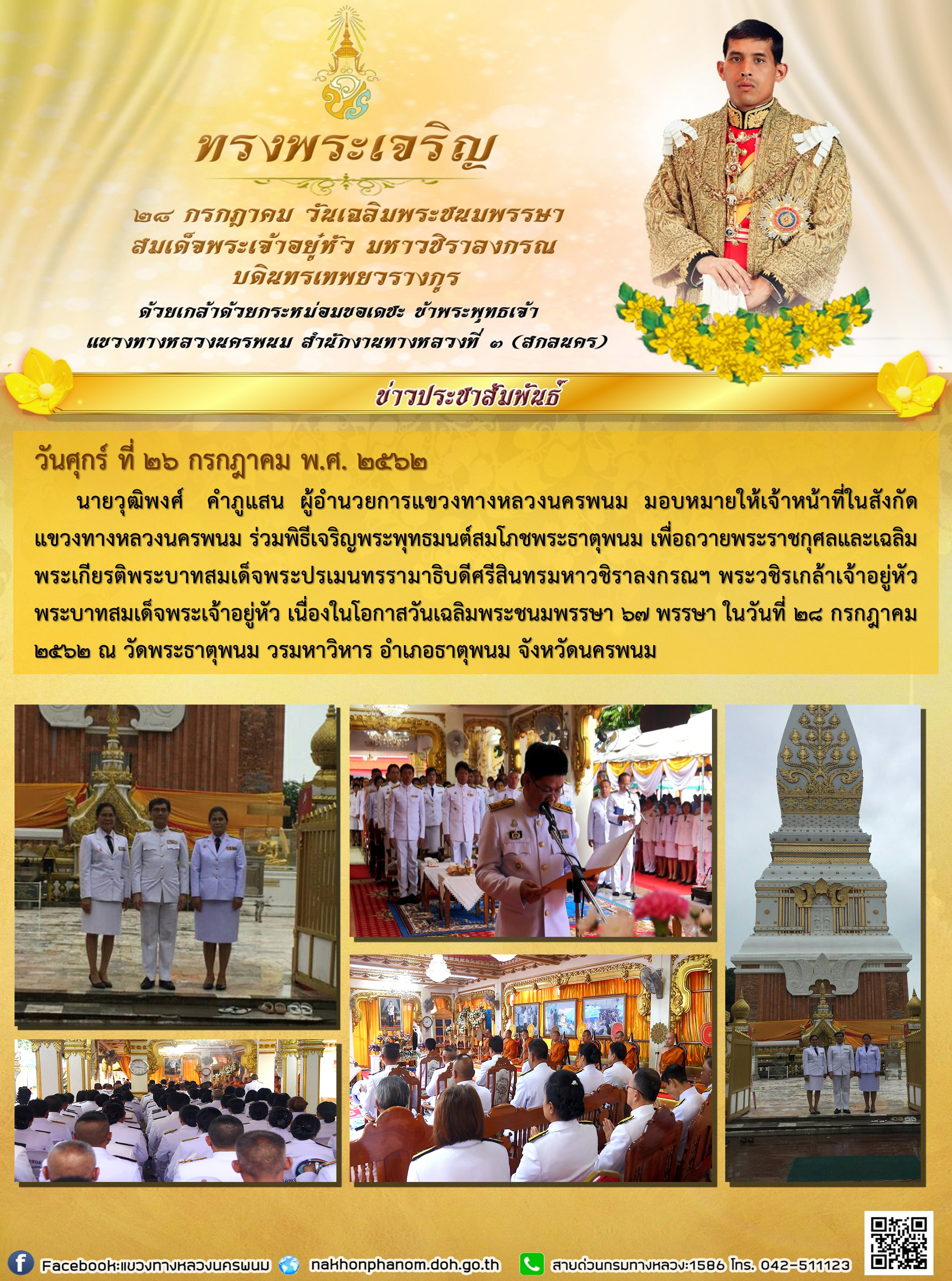 พิธีเจริญพระพุทธมนต์สมโภชพระธาตุพนม พิธีเจริญพระพุทธมนต์สมโภชพระธาตุพนม เพื่อถวายพระราชกุศลและเฉลิมพระเกียรติ พระบาทสมเด็จพระปรเมนทรรามาธิบดีศรีสินทรมหาวชิราลงกรณฯ พระวชิรเกล้าเจ้าอยู่หัว
