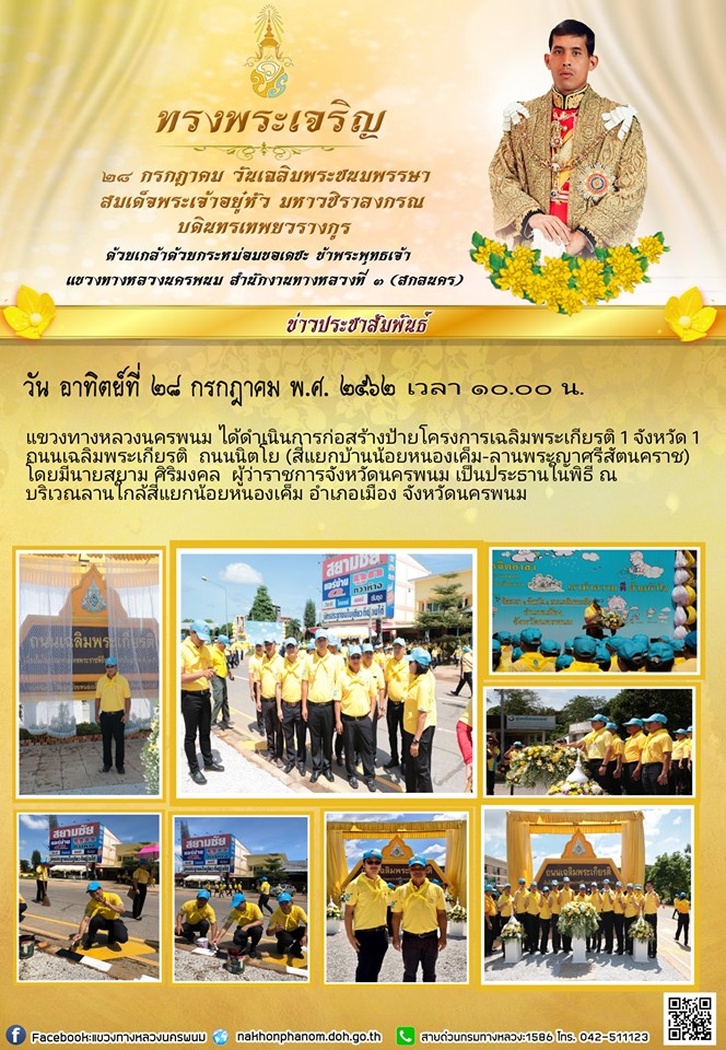 ดำเนินการก่อสร้างป้ายโครงการเฉลิมพระเกียรติ 1 จังหวัด 1 ถนนเฉลิมพระเกียรติ