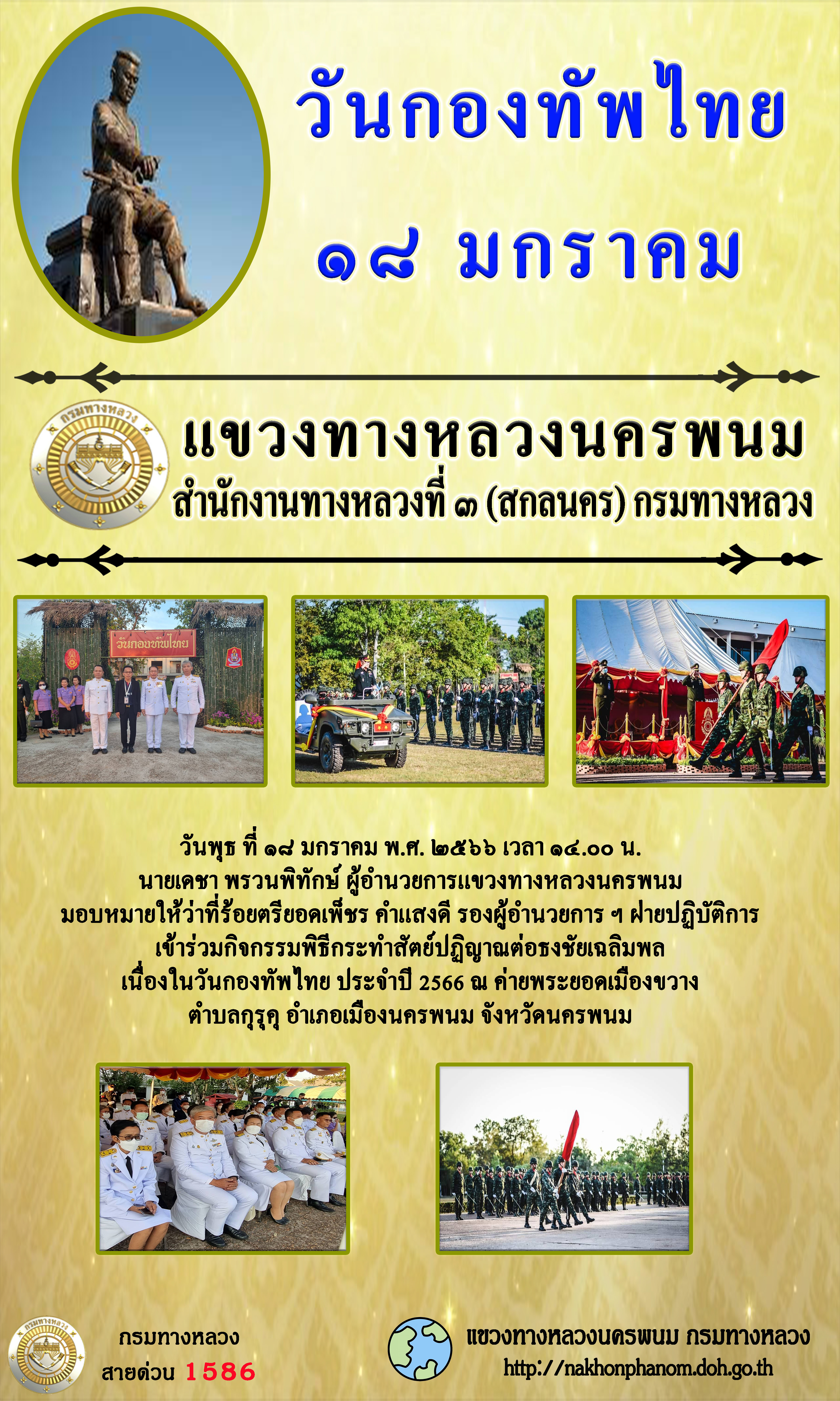 นายเดชา พรวนพิทักษ์ ผู้อำนวยการแขวงทางหลวงนครพนม มอบหมายให้ว่าที่ร้อยตรียอดเพ็ชร คำแสงดี รองผู้อำนวยการฯ ฝ่ายปฏิบัติการ