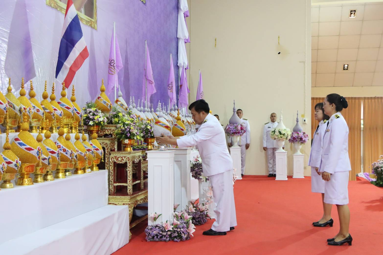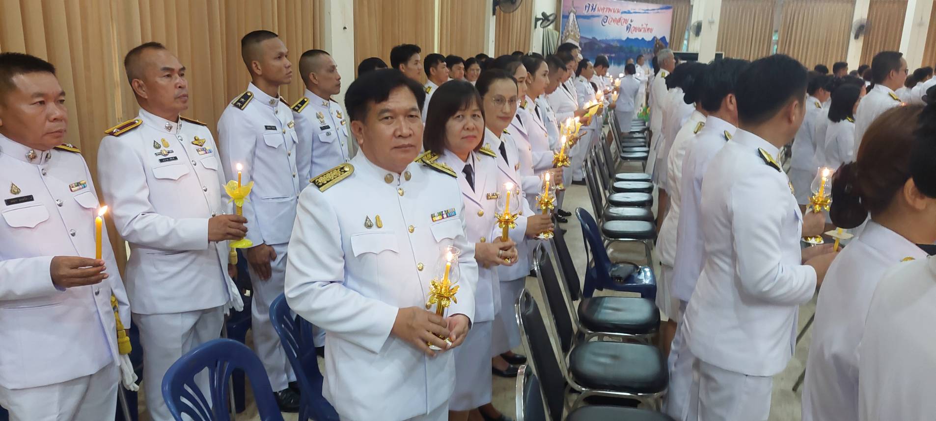 ร่วมพิธีถวายเครื่องราชสักการะ วางพานพุ่ม และจุดเทียนถวายพระพรชัยมงคล