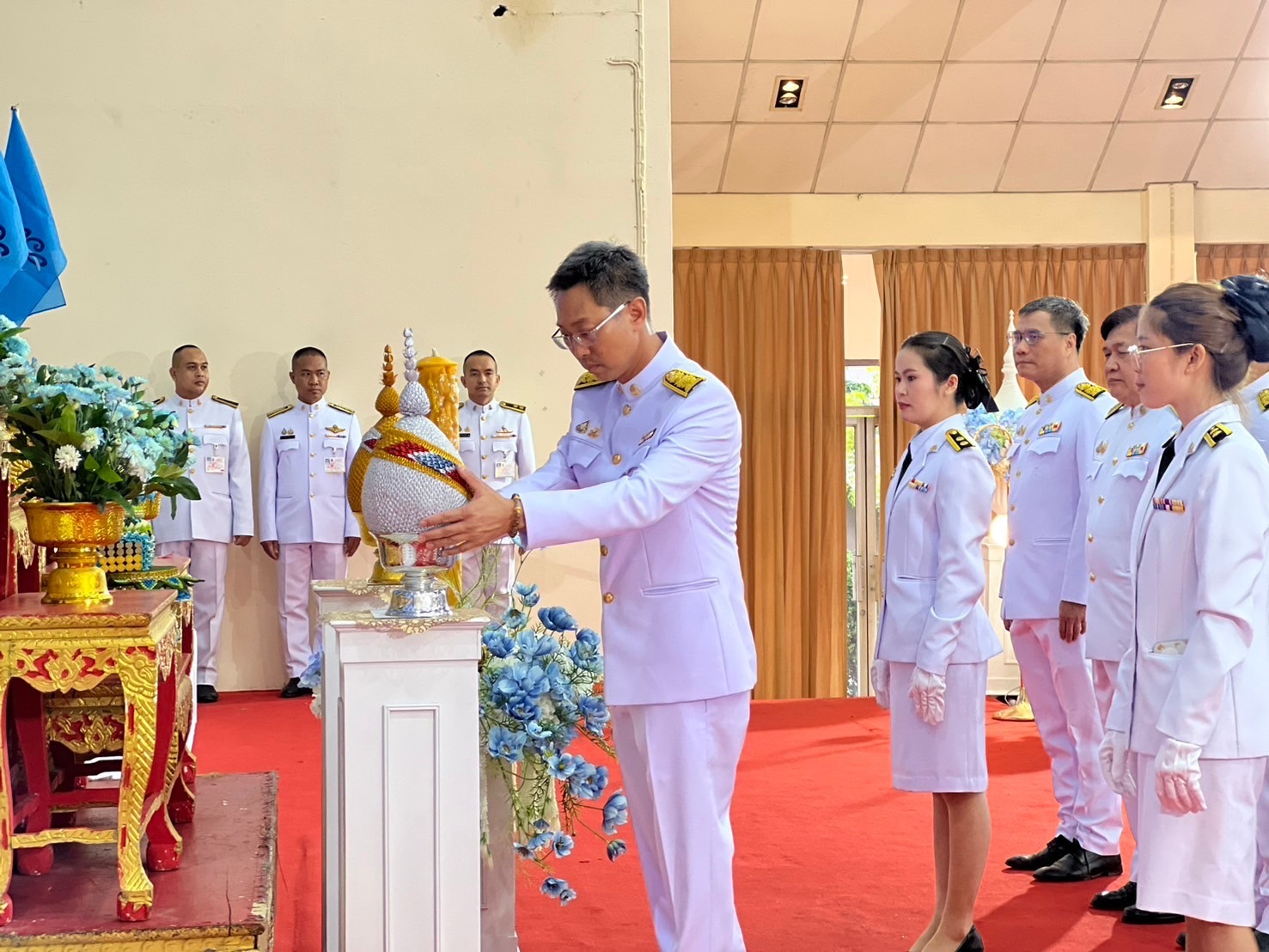 ร่วมพิธีถวายเครื่องราชสักการะและวางพานพุ่ม และร่วมพิธีจุดเทียนถวายพระพรชัยมงคล