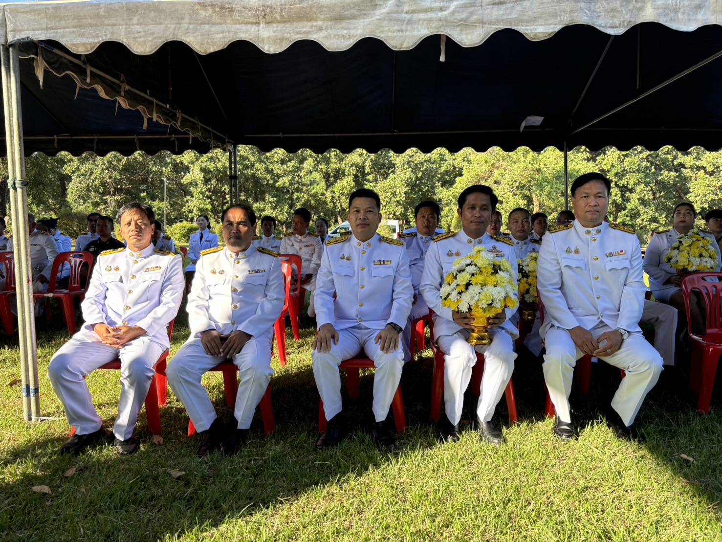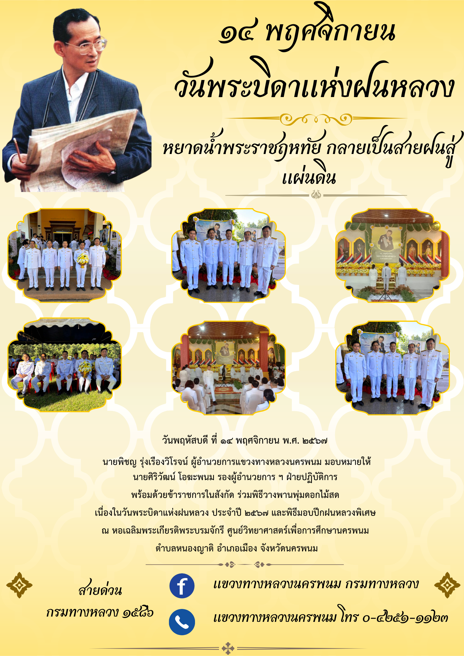 พร้อมด้วยข้าราชการในสังกัด ร่วมพิธีวางพานพุ่มดอกไม้สด เนื่องในวันพระบิดาแห่งฝนหลวง ประจำปี ๒๕๖๗ และพิธีมอบปีกฝนหลวง