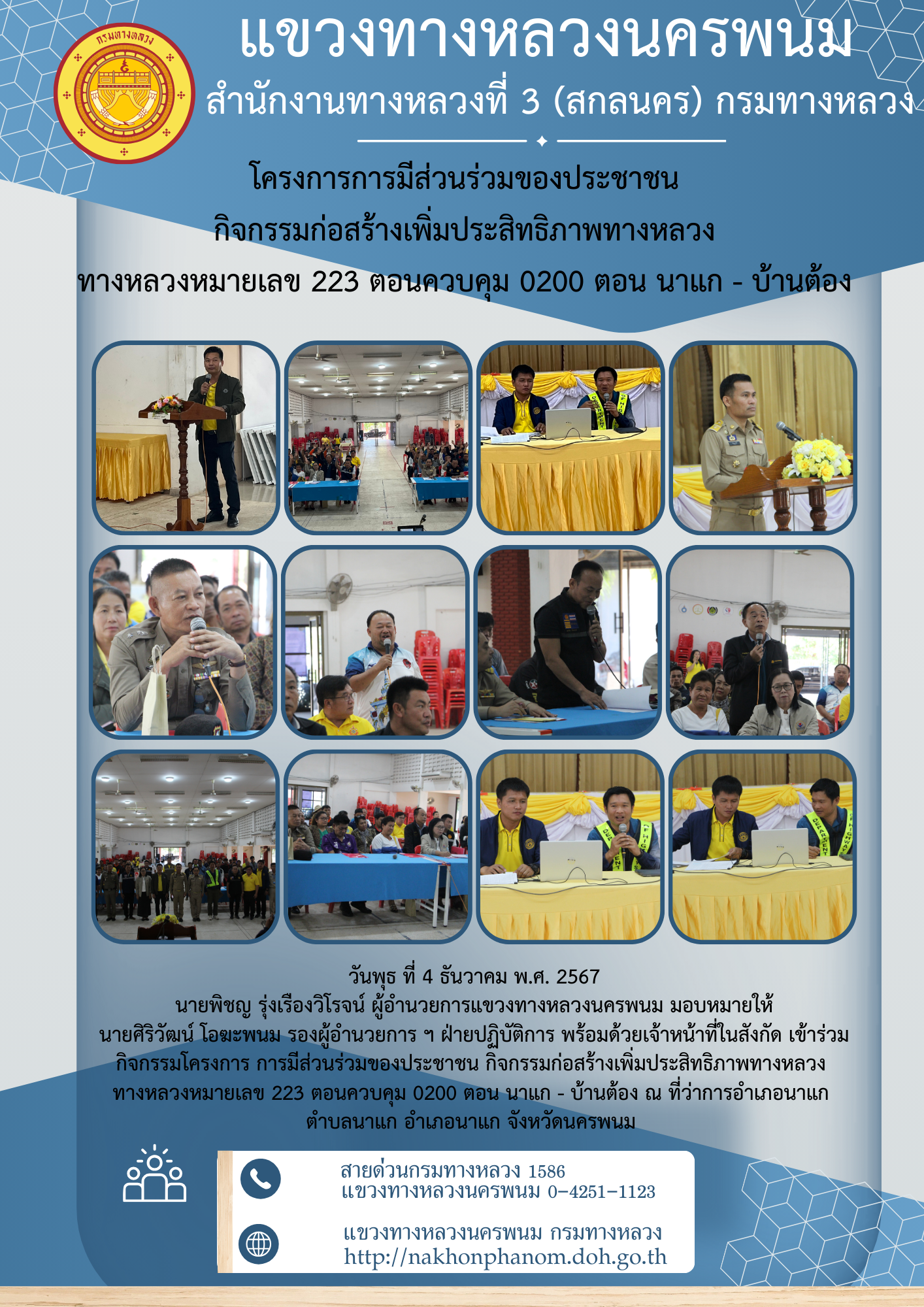 นายพิชญ รุ่งเรืองวิโรจน์ ผู้อำนวยการแขวงทางหลวงนครพนม