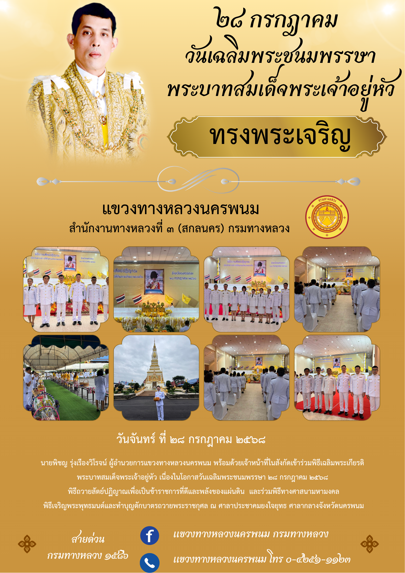 นายพิชญ รุ่งเรืองวิโรจน์ ผู้อำนวยการแขวงทางหลวงนครพนม พร้อมด้วยเจ้าหน้าที่ในสังกัด