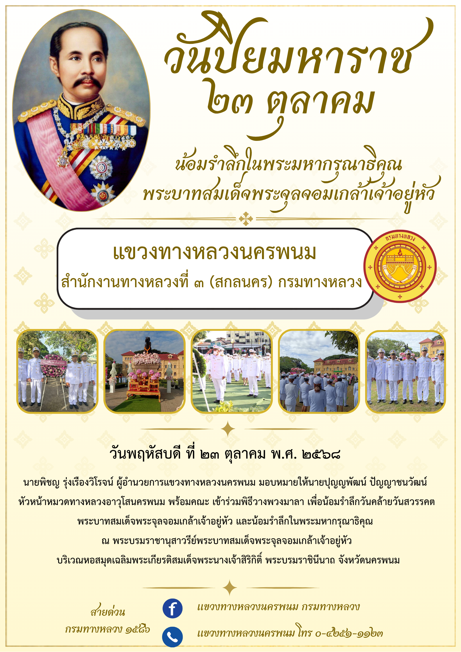 เข้าร่วมพิธีวางพวงมาลา เพื่อน้อมรำลึกวันคล้ายวันสวรรคตพระบาทสมเด็จพระจุลจอมเกล้าเจ้าอยู่หัว และน้อมรำลึกในพระมหากรุณาธิคุณ