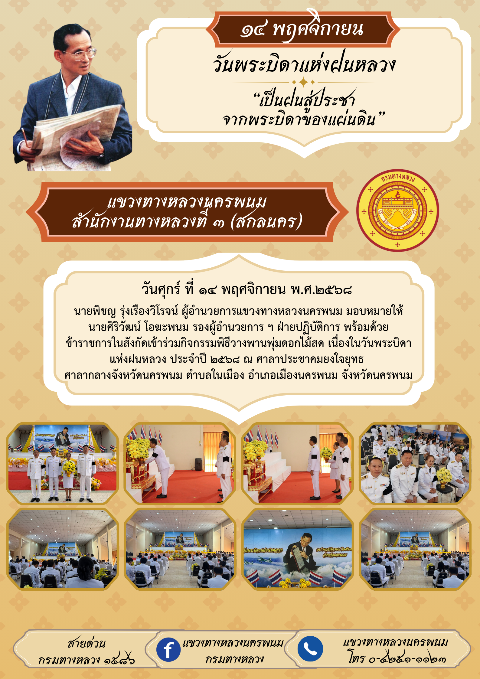 นายพิชญ รุ่งเรืองวิโรจน์ ผู้อำนวยการแขวงทางหลวงนครพนม มอบหมายให้นายศิริวัฒน์ โอฆะพนม รองผู้อำนวยการ ฯ ฝ่ายปฏิบัติการ