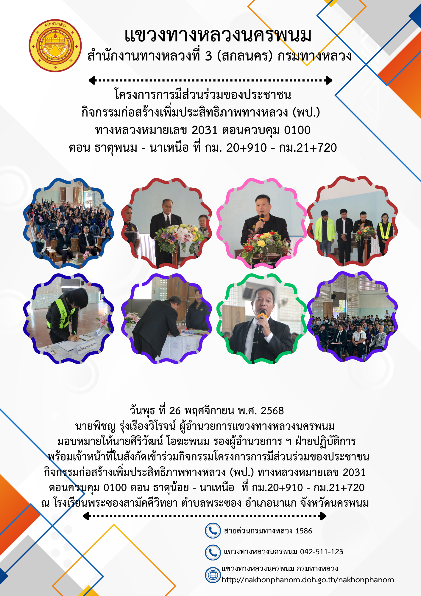 กิจกรรมก่อสร้างเพิ่มประสิทธิภาพทางหลวง (พป.) ทางหลวงหมายเลข 2031
