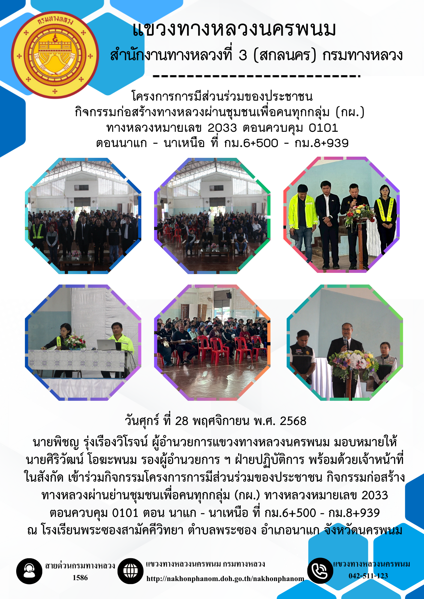 กิจกรรมก่อสร้างทางหลวงผ่านย่านชุมชนเพื่อคนทุกกลุ่ม (กผ.)