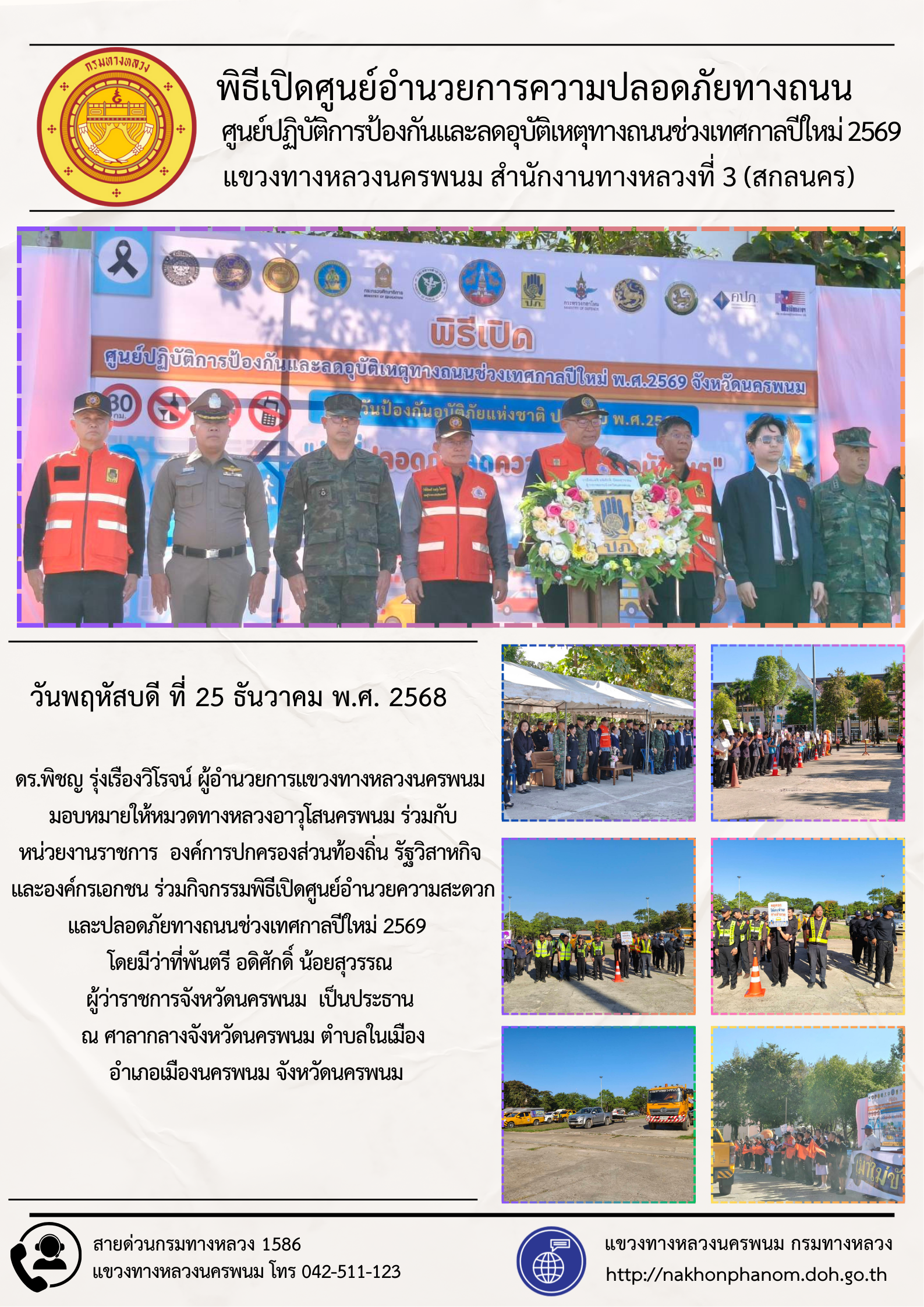 ร่วมกิจกรรมพิธีเปิดศูนย์อำนวยความสะดวกและปลอดภัยทางถนนช่วงเทศกาลปีใหม่ 2569